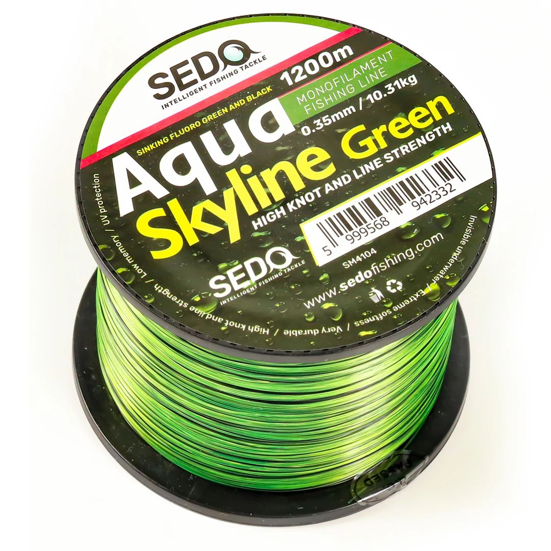 SEDO Aqua zsinórok a legfejlettebb technologiával készültek Japán CoPolymer alapanyagból legmagasabb fokú igénybevételhez a horgászat minden területén. A Skyline zsinórcsaládot a rejtőzködés jellemzi , mivel 2 színű zsinórról beszélünk. Fekete és zöld szín váltakozik a tekercsen keverve rendszertelenül mely minden eddigi megszokott damiltól eltér, ebben rejlik a különleges tulajdonsága. A kettő kevert szín miatt remekül látható nappali és éjszakai fénynél egyaránt, de víz alatt beleolvad a környezetbe a kevert szín. Bátran javasoljuk ezt a típusú zsinórt bojlis és feeder horgászmódszerhez is. Zsinórnak süllyedő anyaga van , becsapódás után könnyű megfeszíteni. A SEDO Aqua zsinórok nagyon lágyak és könnyű kezelni illetve csomót kötni, úgy hogy a kötés utolsó mozzanatában nem ég meg a zsinór és sértetlen marad a csomó összehúzásánál. Hatalmas és extrém szakító szilárdság jellemzi csomónál és nélküle is. Szuper alacsony memoriája nem hagyja hogy bármilyen külső behatás miatt sérülés keletkezzen a zsinóron használat közben Bevágás pillanatában azonnali kontaktunk van a hallal, erős kirohanásoknál kontrolálja a hal védekezését. A gyártási technológia utolsó lépése egy UV Védelemmel ellátott bevonat mely megóvja a zsinórt a napsütéstől, és különböző természeti hatásoktól ezért nem következik be használat közben egy hirtelen minőségromlás és használhatatlanság, ezért egy minőségben tartós zsinórt vehetünk kézbe.
