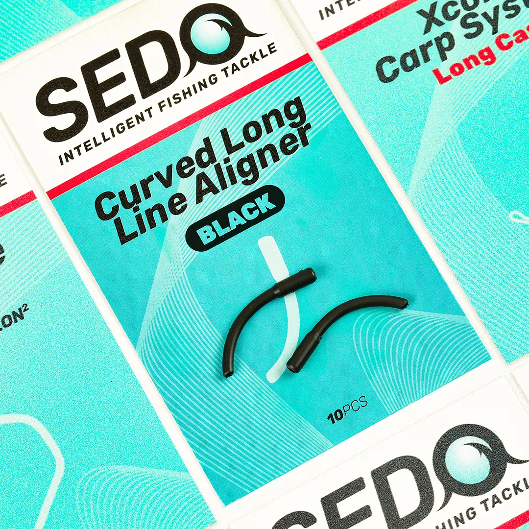 Curved Long Line aligner hatékonyabban fordítja a horgot a hal alsó szájában mint egy hagyományos befordító. Ívelt alakja az akadás elötti pillanatban követi a hal szájának formáját az akadásig. Gyors és Stabil akadást érhetünk el vele. Kompatibilis minden horoggal és sötét színe segít rejtve maradni végszerelékünknek a mederfenéken. Erős anyaga miatt akár több horgon is alkalmazhatjuk miután kicsorbult a horgunk és menthetetlenné válik a rig. Javasoljuk, fekvő, hóember és popup csalizási módokhoz.