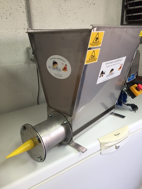 Amig az extruder dolgozik addig nyugodtan bekeverhetjük a következő tészta adagunkat ha kinyomó módra van kapcsolva a gépünk és egy mozdulattal rátöltjük a bojlitésztát és így nem szakítjuk meg a munkafolyamatot és nem lesz időveszteség a termelésben. Az extrudert használhatjuk bojli tészta bekeverésére – dagasztására is, egyszerűen csak visszafelé forgatjuk a teknőben levő csigát. Ha bármi történne a géppel vagy netán valami beleesne egy piros biztonsági STOP gombot szereltünk a motorba hogy minél hamarabb meg lehessen állítani.