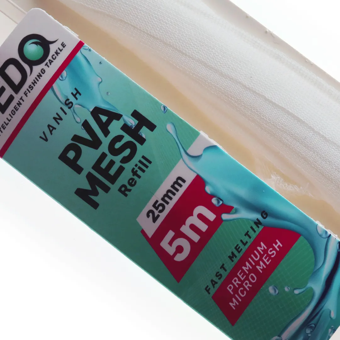 PVA háló elengedhetetlen kelléke a modern pontyhorgászatnak. Bármilyen koncentrált etetést létrehozhatunk a PVA háló segítségével, tölthetjük, pellettel, apró magokkal, bojli szemekkel vagy darált bojlival illetve stick mixel is! Gyors oldódása garantált akár hidegebb vízben is. Erős anyagszerkezet mellé apró szemű háló szövés párosul. Neutrális anyagból gyártva ezért semmilyen mellékíze és illata nincsen. Vanish PVA Mesh System gazdaságos utántöltője.