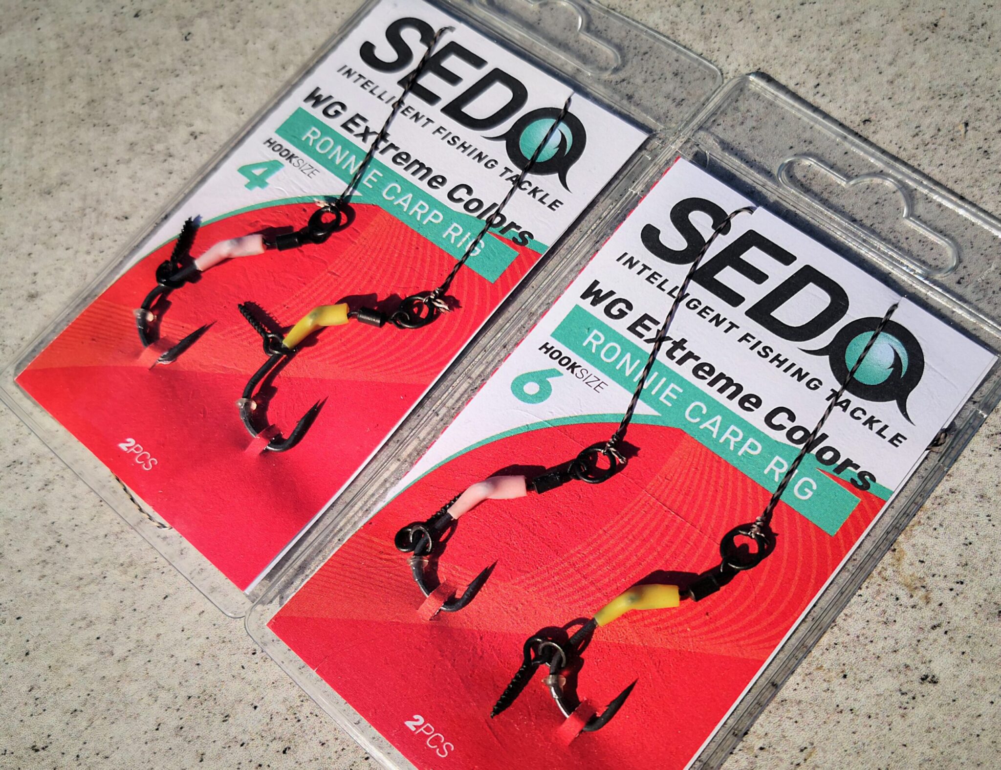 Ronnie Rig első számú felkínálási mód a lebegő csalik körében. Szinte bármikor alkalmazható. Elsősorban javasoljuk lehűlő és melegedő vizekben , illetve gyengén táplálkozó pontyok megfogásában segít. A WG Extreme Colours Ronnie Rig egy agresszív egyenes hegyű horogból a SEDO Wide Gape Extreme-ből lett építve, a tűhegyes hegy a hal szájában az első kontakt után ragad és mélyre akad. Vizuális Hi- Viz hatás növelésére Pink és Yellow horogrögzítőt alkalmaztunk. TIPP: Elastic Tungsten Putty – ólompasztával súlyozzuk ki az előkénket úgy hogy a popup a riggel együtt lassan merüljön vízbeéréskor