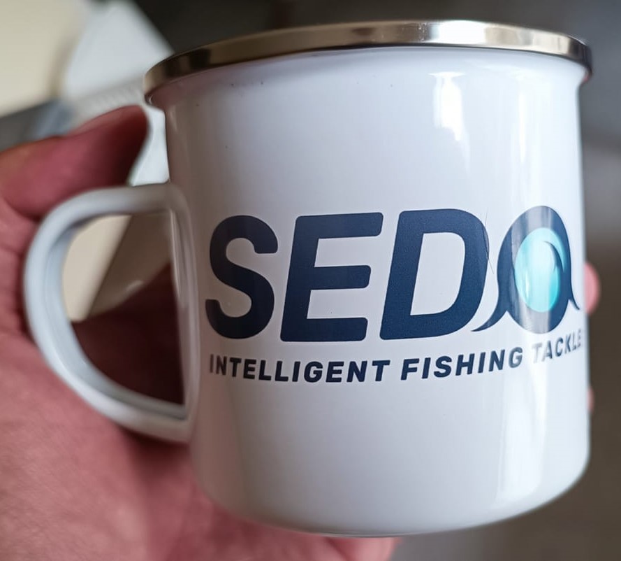 Zománcozott Bögre Fehér 300ml-es, fekete SEDO Fishing logóval.